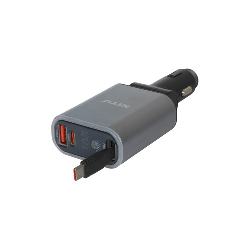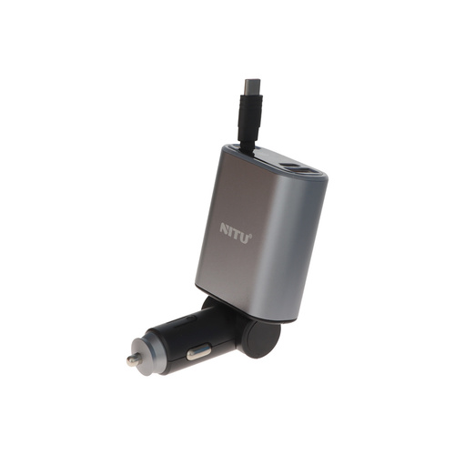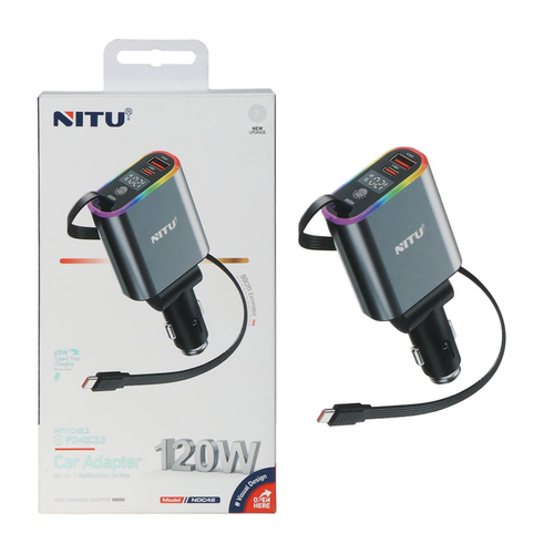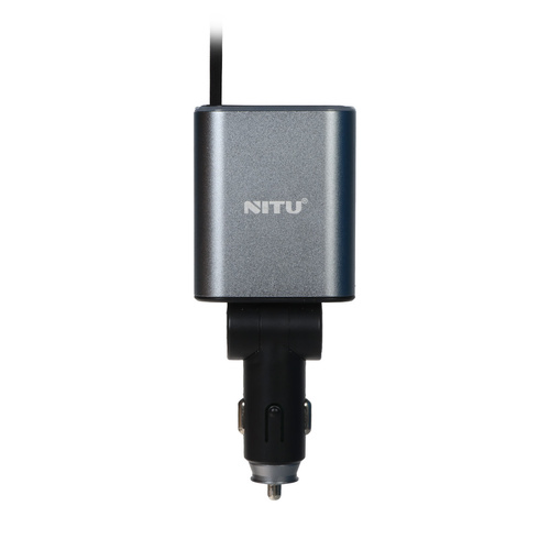 شارژر فندکی PD و فست سه پورت Nitu 120W مدل NDC42 به همراه کابل شارژ متصل Type-C - خاکستری (گارانتی 18 ماه تعویض نیکان همراه)