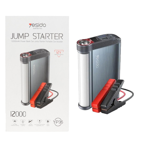 جامپ استارتر خودرو و پاوربانک Yesido 12000mAh مدل YP36 - مشکی (گارانتی 18 ماه تعویض نیکان همراه)