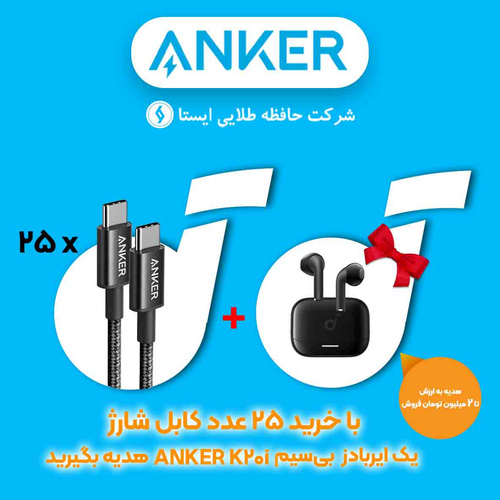 سبد ویژه 25 عددی کابل شارژ فست ANKER Type-C to Type-C مدل A8752H11 +(هدیه : ایربادز : K20i)